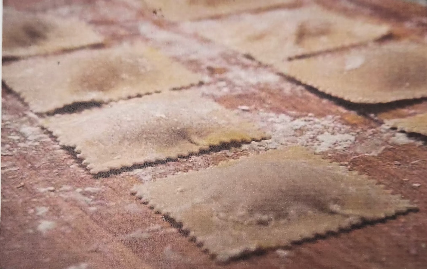 라비올리(ravioli)에 대한 정확한 기원은 잘 알려지지 않았으나 중세시대에 탄생한 것 으로 보는 것이 일반적인 견해이다. 중세시대는 이탈리아에서 파스타 생산 기술이 발 달하던 시기이기도 했다. 라비올리(ravioli)는 1353년 발간된 보카치오(Boccaccio)의 저서 『데카메론』(Decameron)에 등장하는 것으로도 유명하다. 벤고디(bengodi)라 불 리는 상상 속 구르메 파라다이스(gourmetparadise)가 등장하는 장면으로 산처럼 쌓 인 파르미지아노 레지아노 치즈가루 위에서 마카로니(macaroni)와 라비올리(ravioli) 를 만들어 닭 육수에 넣고 끓여 먹는 사람들의 광경이 묘사되어 있다.