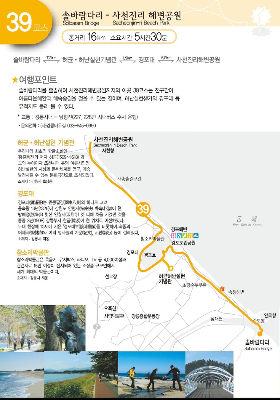솔바람다리(7.3km) - 허균, 허난설헌기념관(3.7km) - 경포대(5.2km) - 사천리진리해변