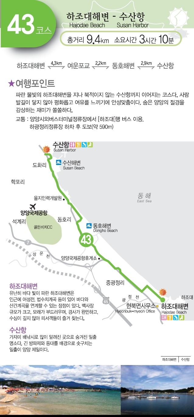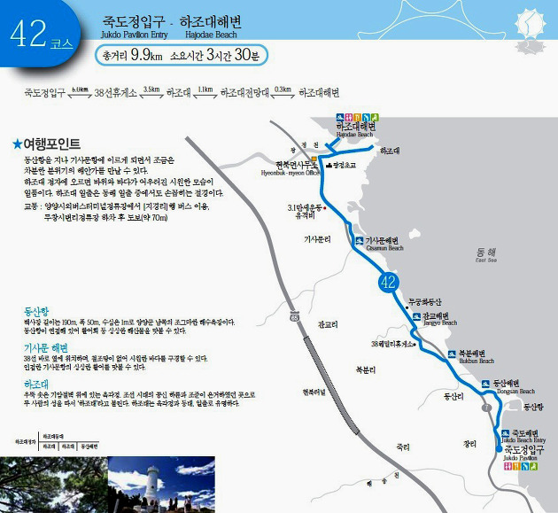 하조대해변(4.3km) - 여운포교(2.2km) - 동호해변(2.9Km) - 수산항