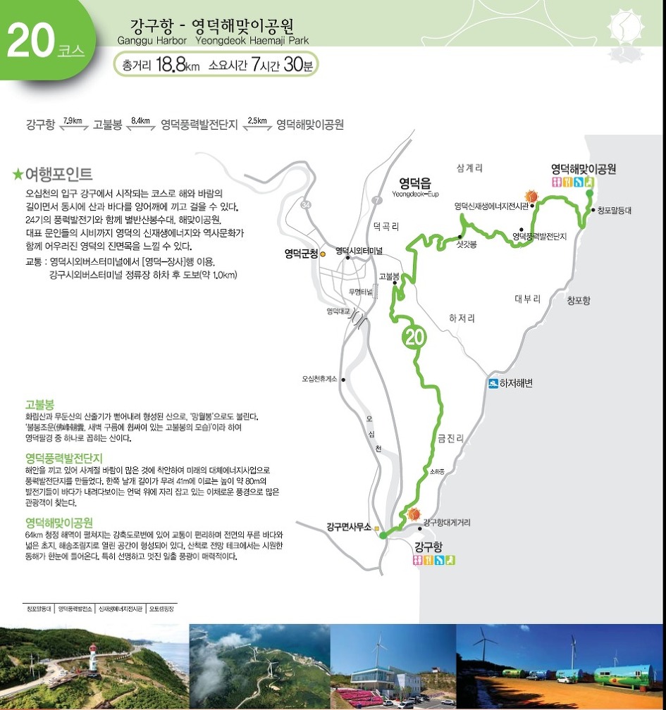 강구항(7.9km) - 고불봉(8.4km) - 영덕풍력발전단지(2.5km) - 영덕해맞이공원