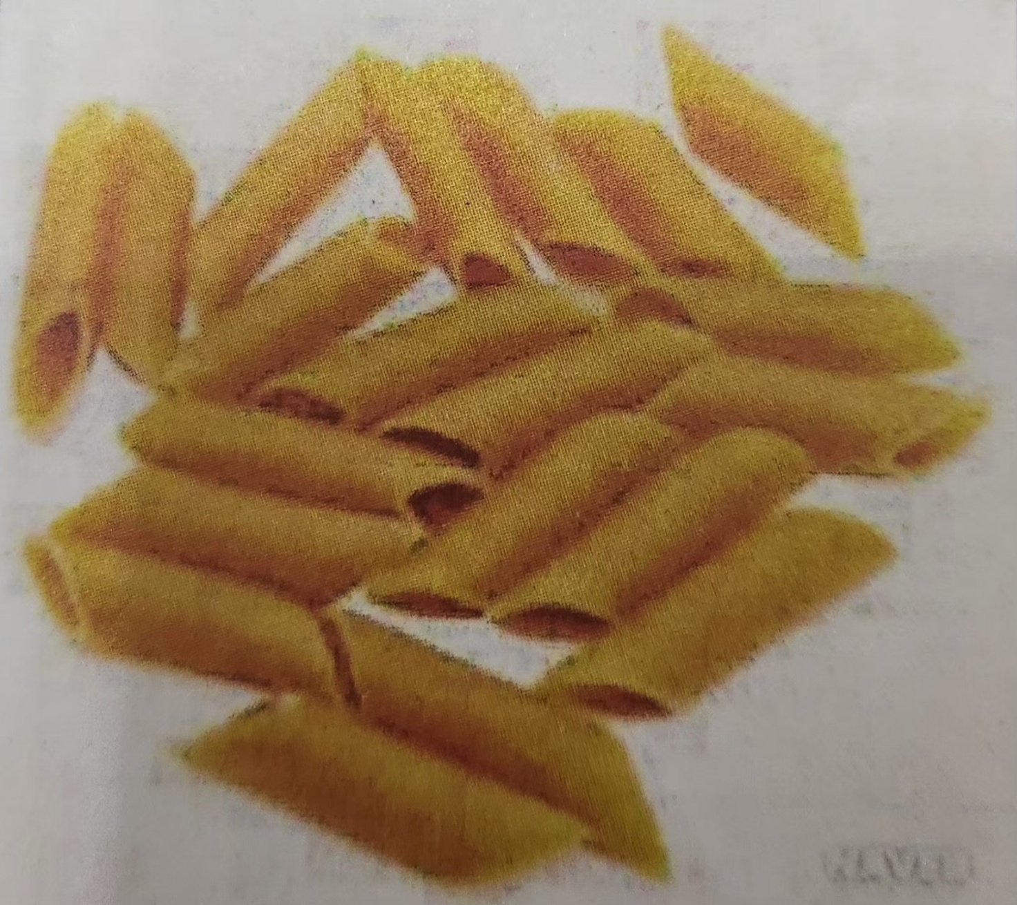 구부러져 있는 짧은 튜브 모양을 하고 있다. 우리가 흔히 보는 마카로니와 비슷하 게 생겼다. 오븐 요리나 샐러드에 잘 어울린다.